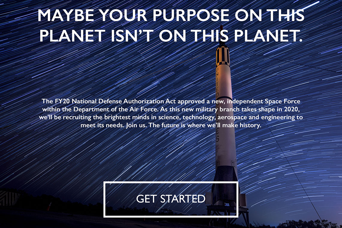 Space force recruitment. USSF responsibilities will include developing military space professionals acquiring military space systems maturing the military doctrine for space power and organizing space forces to present to our. Very proud to have recently been commissioned by the Trump administration to create this recruitment video for the newly founded Space Force. Active duty officers and enlisted personnel Colonels and below from other Uniformed Services are eligible for transfer to the Space Force.