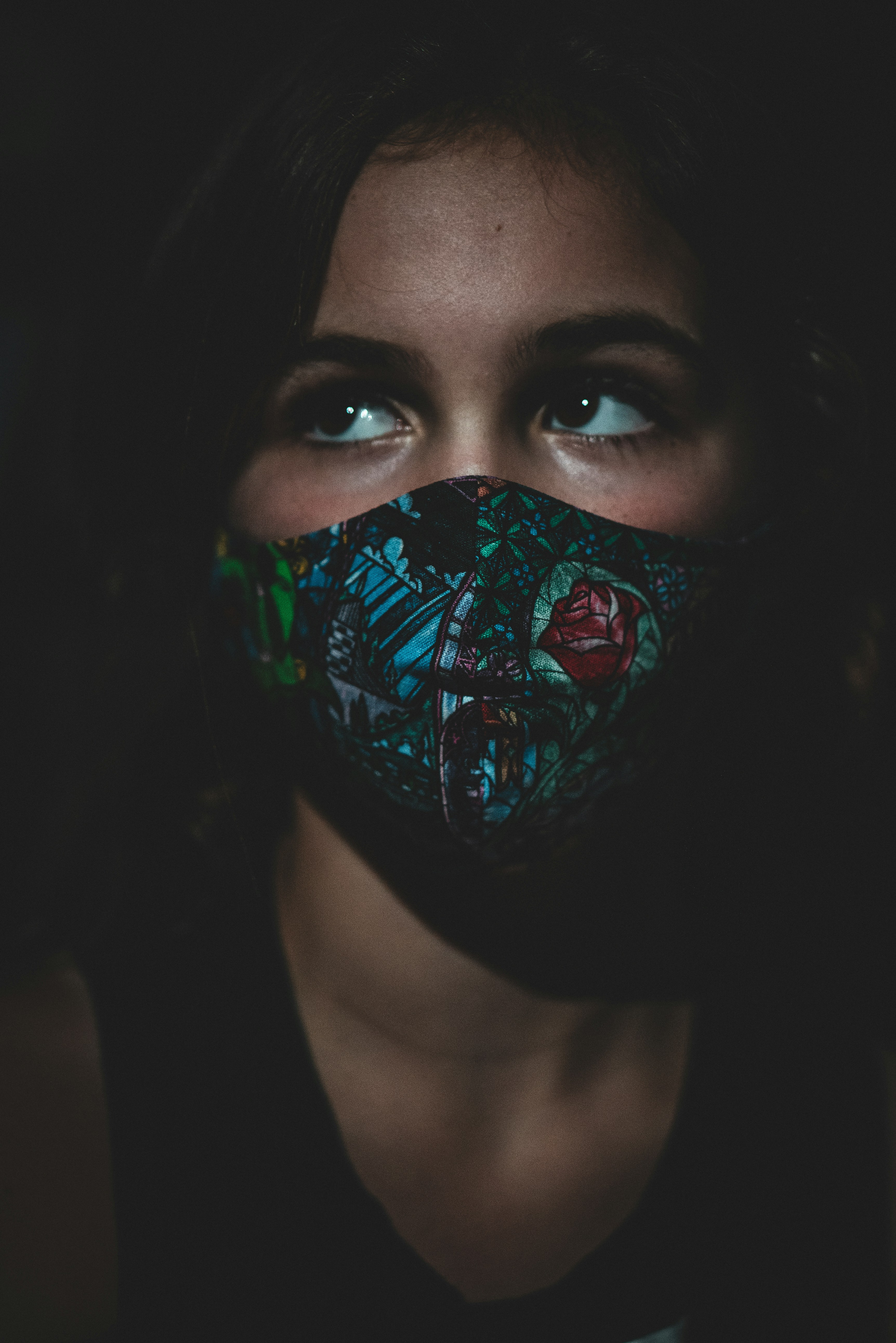 Premium Photo Young Woman With Black Face Paint On A Black Background